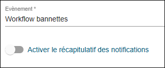 Sur les événements de type workflow de bannettes il est possible d'activer le récapitulatif des notifications. Un seul message récapitulant l'ensemble des bannettes sera envoyé aux utilisateurs au lieu d'un message par bannette.