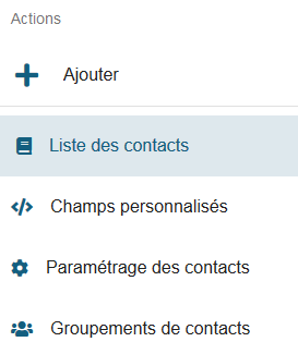 Le panneau de gauche affiche les actions disponibles qui ne sont pas liées à un élément particulier de la liste affichée comme :