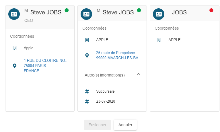 Note : seules les données absentes de la fiche contact cible mais présentes dans les fiches contacts source sont ajoutées
