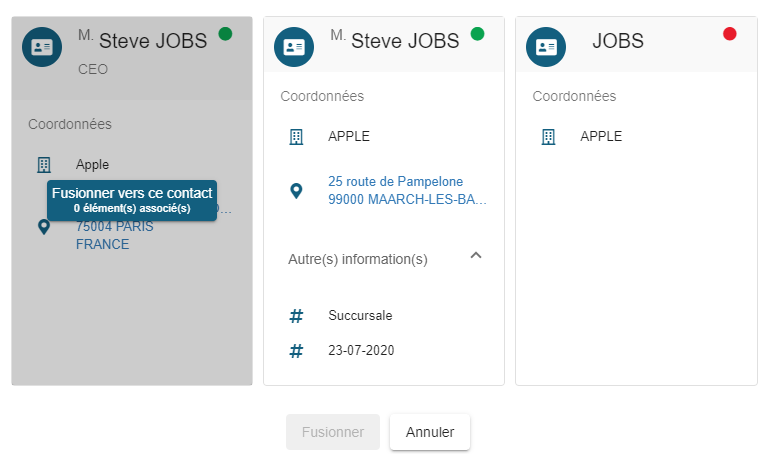 Choisissez le contact "cible" en cliquant sur le bouton "Fusionner vers ce contact"