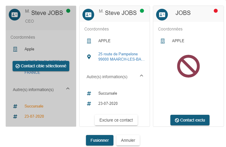Le bouton "Exclure ce contact" permet de ne pas fusionner la fiche sélectionnée