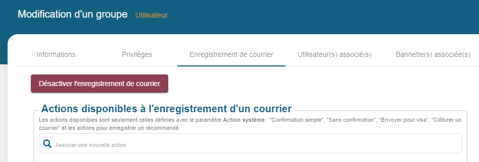 Positionner les actions spécifiques liées à l'enregistrement des bordereaux en bannette utilisateur