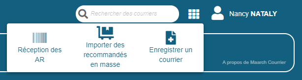 Les bordereaux de recommandés disposent de menus d'actions qui leur sont propres et n'apparaissent que si elles sont activées pour le groupe de l'utilisateur.