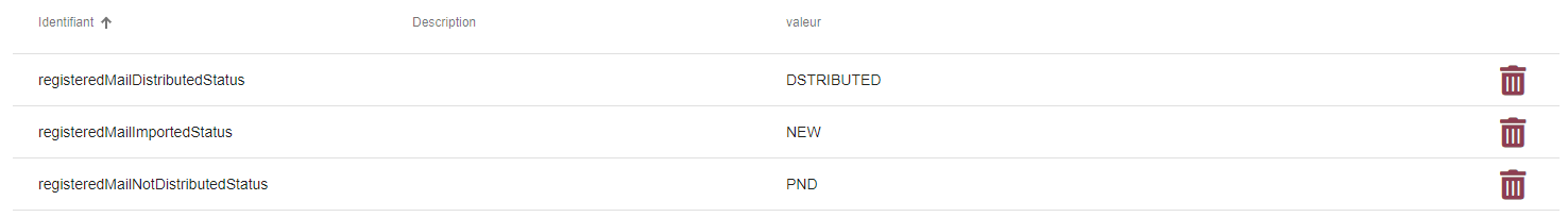 registeredMailDistributedStatus Identifiant du statut dans lequel passeront les bordereaux de recommandés distribués Renseigner un Identifiant de statut